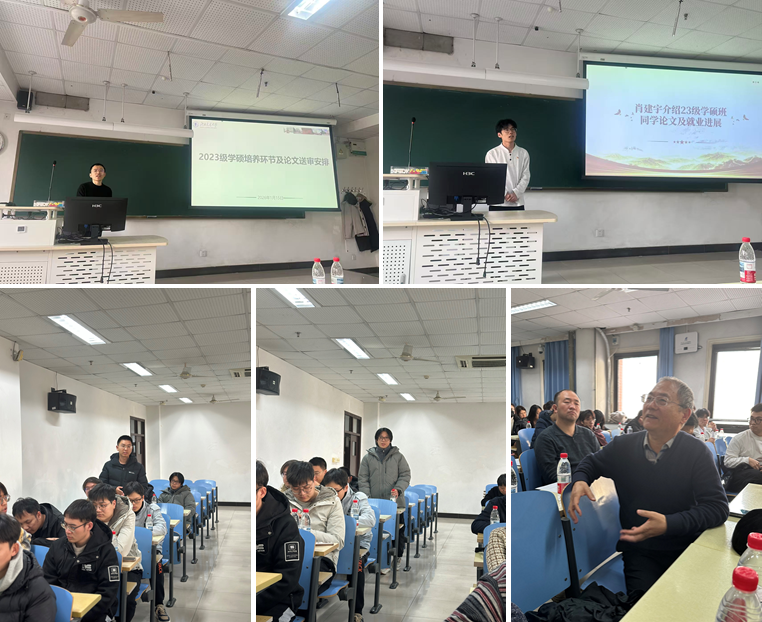 交流环节中,杨志程老师介绍了毕业论文预答辩、送审及答辩的流程要求。肖建宇、王齐两位同学分别汇报了2023级两个班级论文进展与就业情况。随后同学们围绕就业方向、论文撰写、人工智能在专业领域的应用等话题踊跃提问,与会教师一一给予细致解答,现场交流热烈融洽。